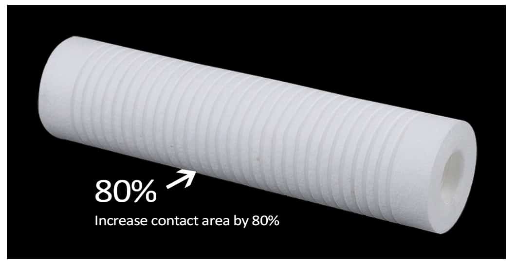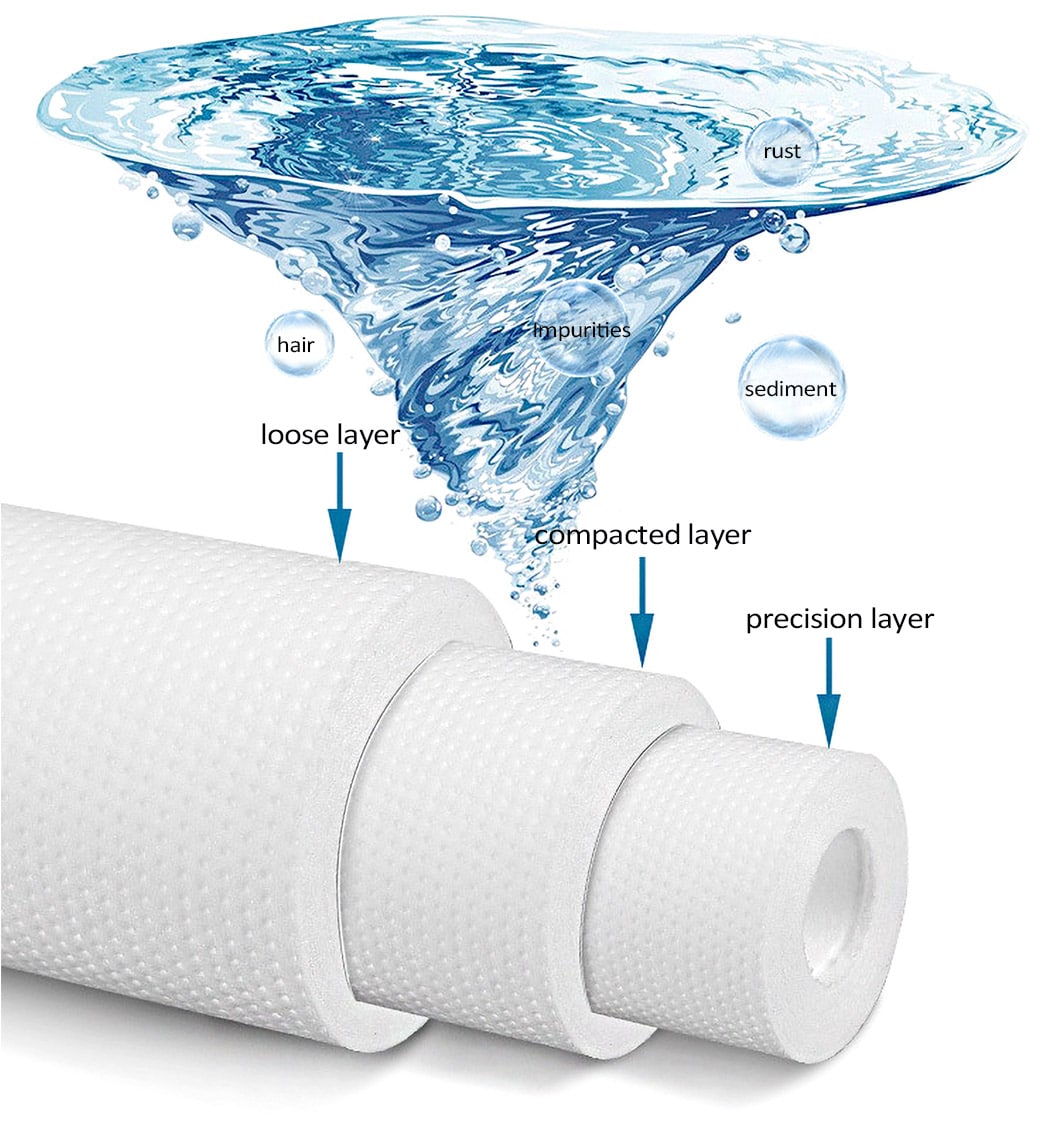 The filter cartridge pore is small in the inner layers and large in the outer layers, which enhances its flow
