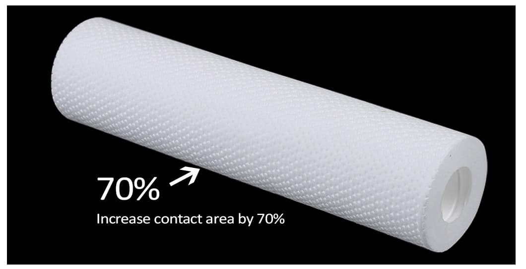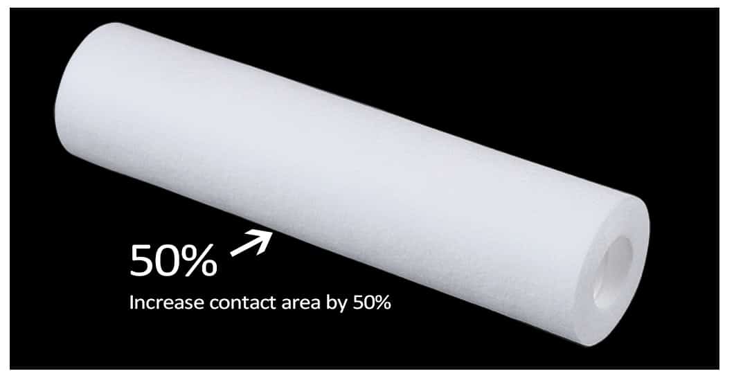 The fibers are finer, the structure is tighter, the density is higher, the dirt-holding capacity is stronger, and the purified water flow rate is increased.