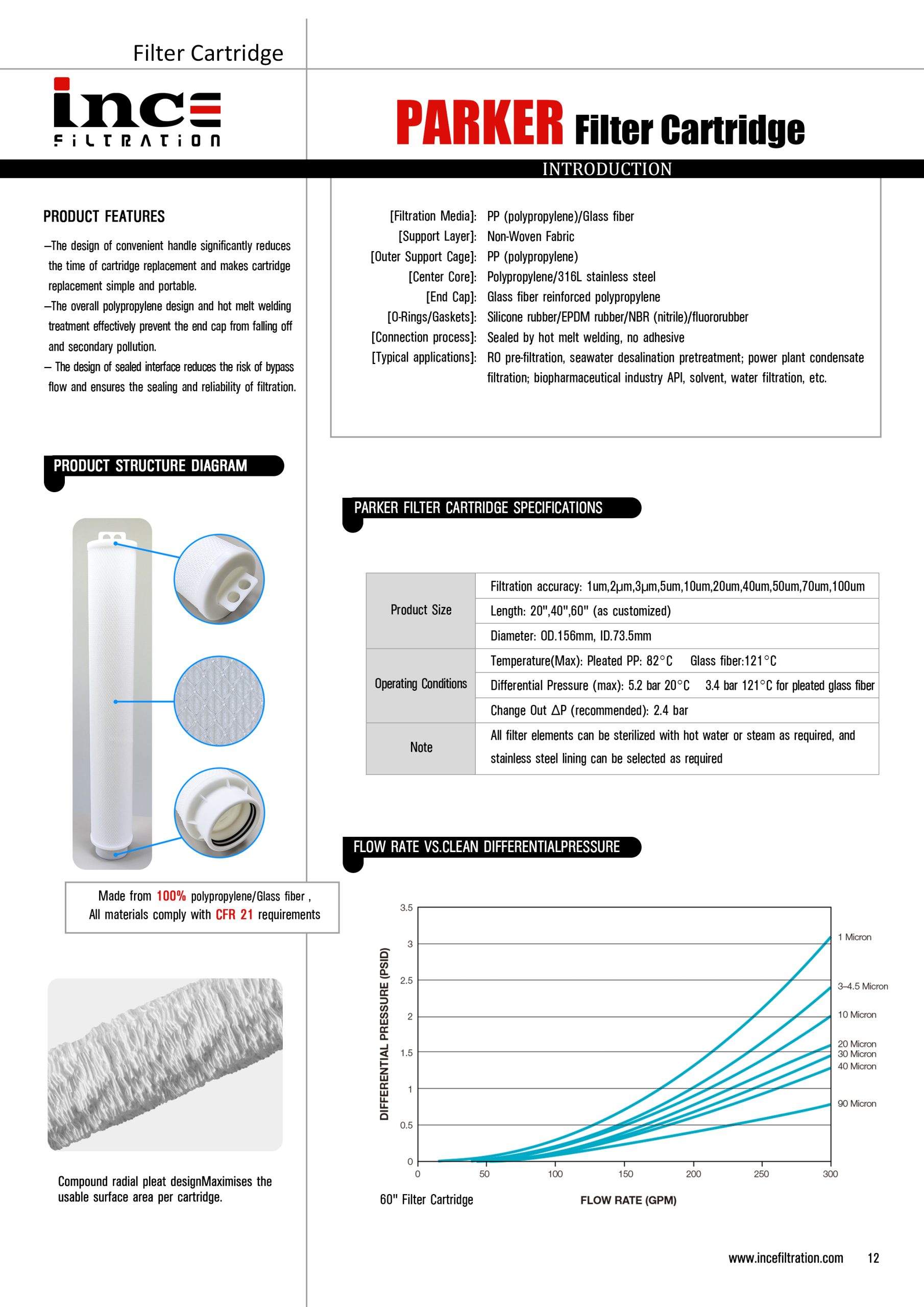 The PARKER Filter Cartridge is designed as a high-performance cartridge solution for liquid and water filtration systems. Its structure integrates multiple functional layers, each contributing to consistent filtration efficiency and mechanical stability. The filtration media is composed of polypropylene or glass fiber, selected to support controlled particle retention while maintaining stable flow characteristics across a wide range of operating conditions.