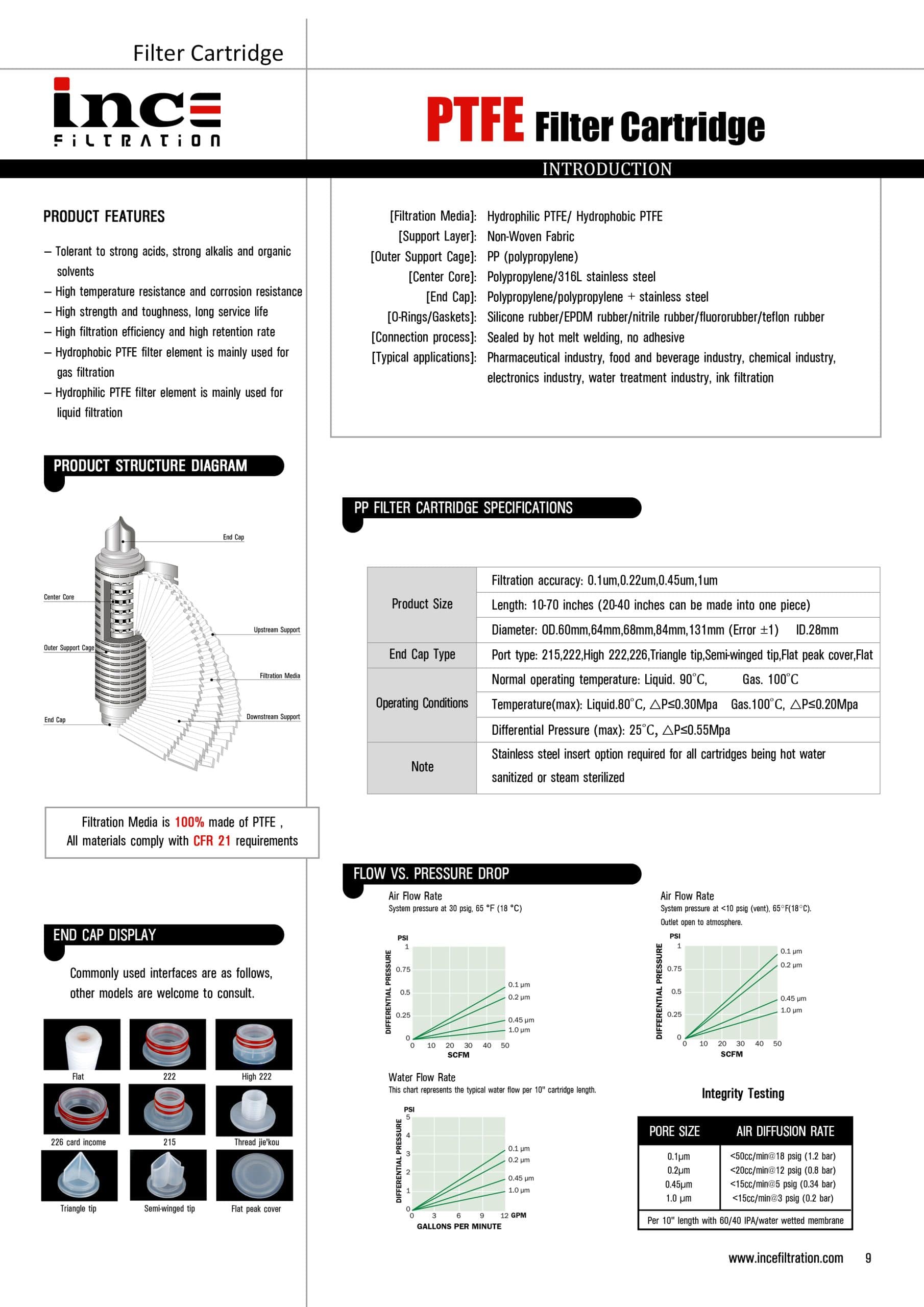 and corrosion resistance. This filter cartridge is suitable for the filtration to liquids and gases with strongly aggressive and oxidative. |
