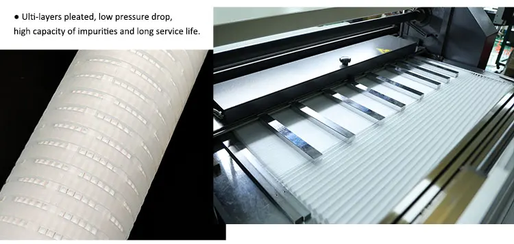 Big pleated filter cartridge is designed for the filtration of the manufacture wetting process in the flat panel display. It has a