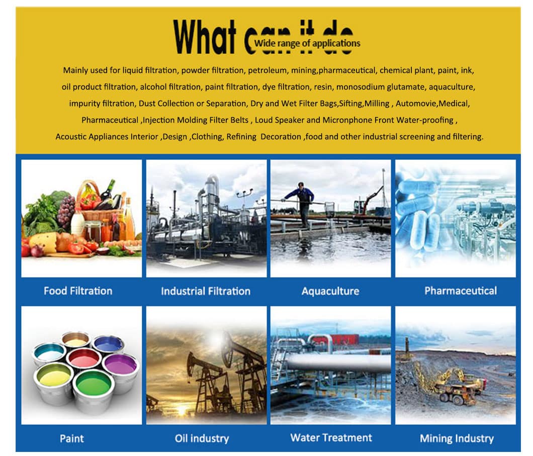 4. Excellent in liquid, powder, dust, gas, and other element filtration.