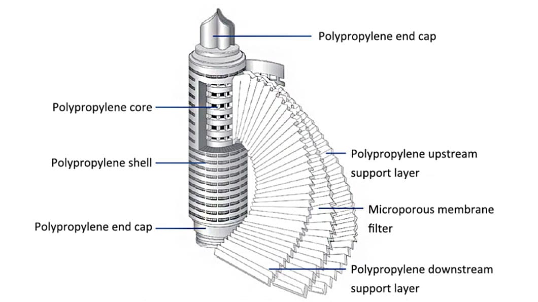 PP pleated filter cartridges adopt thermal welding techniques to seal all components, so no side leakage happens, thus optimizing