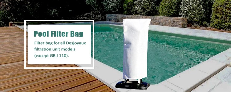 Filter bag compatible with Desjoyaux filtration systems (excluding GR.i 110 and above-ground pools), with a mesh size of 6, 15, or 30 microns, dimensions are: 58 x 33 cm interior.