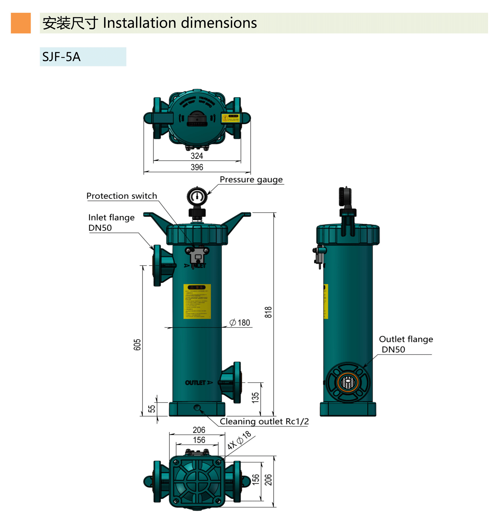●This filter is a bag filter, equipped with a standard 5# filter bag (φ150*510MM). It can also be modified into a 20″*3-core cartridge filter.