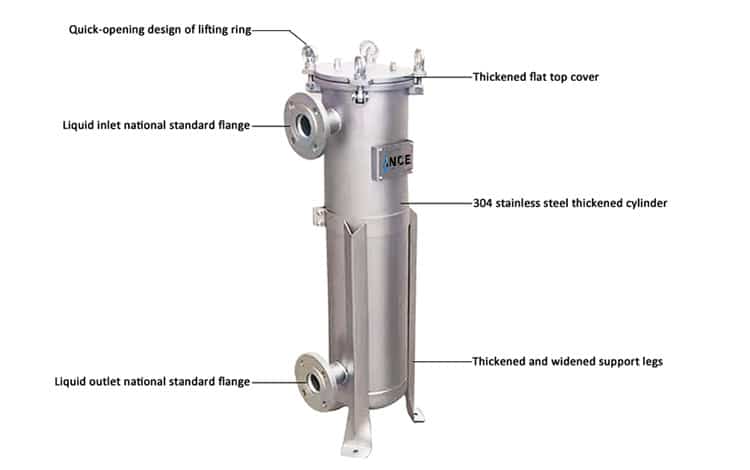 Bag filter is mainly used to filter impuritues in water,beverages and chemical liquids.Bag filter is mainly composed of three parts,filter housing,stainless steel basket and filter bag. PRODUCT ADVANTAGES, FACTORY STRENGTH Hebei Ince Environmental Technology Co., Ltd The single bag filter combines the years of customer experience in the filtration industry.