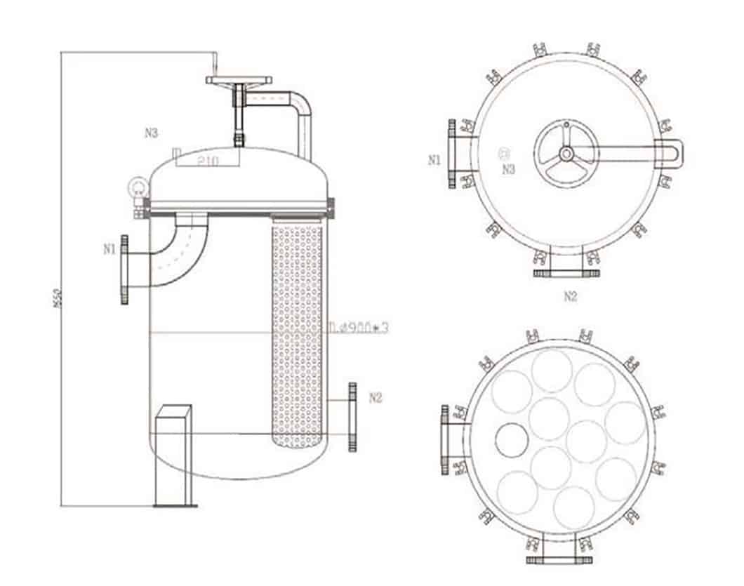 The compression spring pressure piece can form a 360° seal with the filter bag. The thickened filter bag bearing flower plate can withstand higher pressure, reduce pressure loss, and improve the filtration effect. It can support 1-24 bag customization according to customer flow requirements.