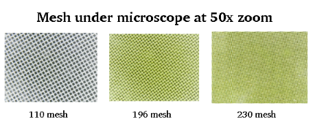Remember: screens are made up of woven threads. Mesh numbers help us describe the exact details of how thin or dense this weave is.